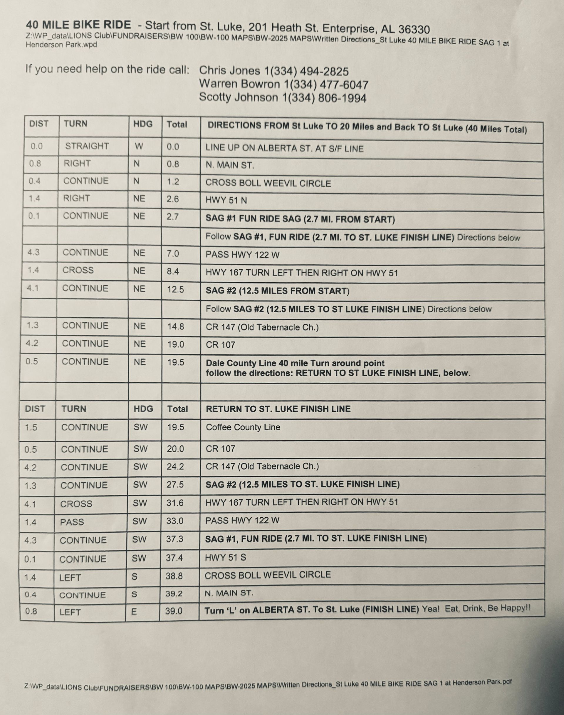 Each year the Enterprise Lions Club raises funds for a number of worthy charities, but the core mission of Lions International is the preservation of sight and prevention of blindness. Therefore, this year our bike ride will be in recognition of this important mission; we're calling it "The Lions Ride for Sight." All registration fees will be deposited into our Foundation funds, and we will make our annual donation to Lions Sight in June. In addition, our club works all year to provide vision exams and eyeglasses to those who could not otherwise afford them. We are working with Lions Sight to provide free screening exams at some of our local events. Your participation in this ride will help us raise much needed funds for vision care. Registration information is found below. Bring the whole family and your friends and help us support this worthy cause.
