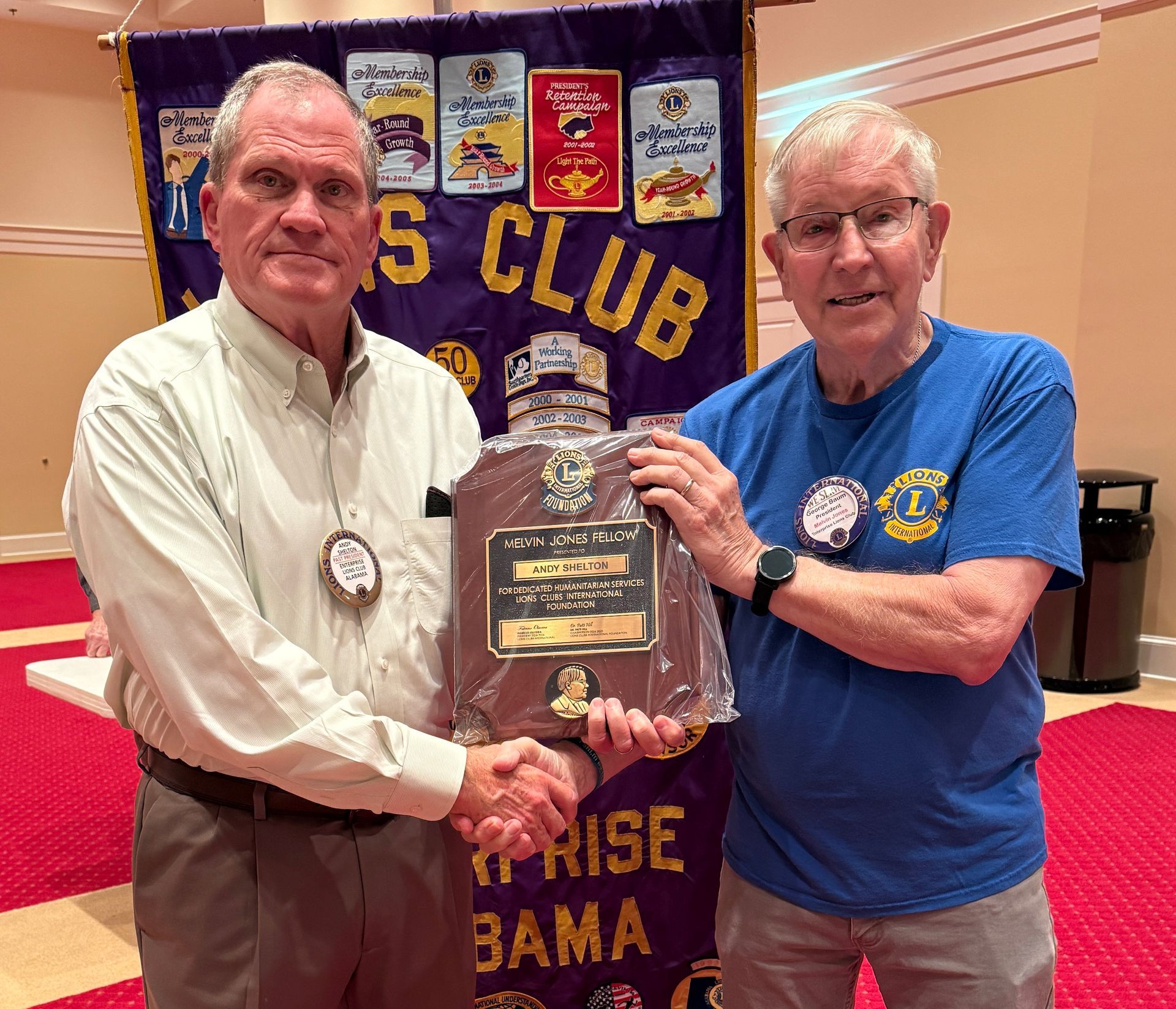 Named for Melvin Jones, the founder of Lions International, this Fellowship Award was established in 1973 and is the highest form of recognition of service to Lions. It embodies humanitarian ideas consistent with the nature and purpose of Lionism. The recipient of this award becomes a model of exemplary service to his club and the community it serves.